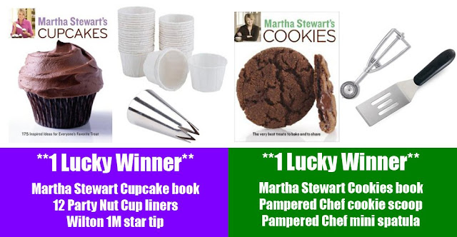 And me, I love me some cupcakes, but I also LOVE Martha Stewart’s Cookie book. (Remember my excitement when I received it as a gift?) I’m so excited to give someone else the opportunity to own that book! I’ve already got a tag dedicated to the cookies I’ve from the book. To go along with the book, I’m also giving away a Pampered Chef Mini Spatula, and Pampered Chef Medium Cookie Scoop. That mini-spatula is just AWESOME! It’s thin metal edge is perfect for cookies. I can’t believe how long I was using my thick plastic one to transfer my cookies. I always ended up with broken cookies. It’s also awesome for bar cookies & brownies. Another way to ensure perfect cookies, is to make them uniform in size. The best way to do that is using a cookie scoop. I made the mistake of buying one at Target. I’m not kidding when I say it broke that very day, on the third cookie I scooped. It just so happens that my cousin is a Pampered Chef rep, (click the link to visit the Pampered Chef store if you’re interested in ordering anything). This is very bad for someone as Pampered Chef obsessed as I am. I’ve slowly been purchasing all the things on my wish list. I now own all the cookie scoops. I could tell from the first instant I held this cookie scoop in my hand that it was stronger and sturdier than the Target one I bought. It hasn’t let me down yet. I’ve been making perfectly round cookies ever since!
