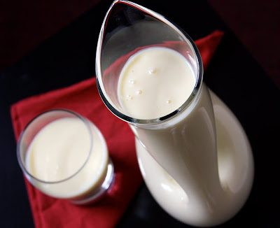 In a double boiler warm milk over medium heat, stirring occasionally. Separately, in medium bowl beat eggs. Add sugar to eggs and beat until fluffy.
