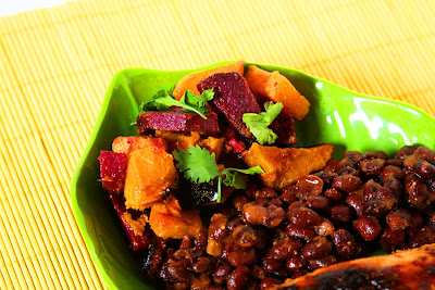 This is a great dish to serve to company because it’s super simple to prepare, yet impressive in appearance and flavor. I know I sound like one big broken record, but I have such a weakness for brightly colored foods. When The Boy and I were shopping for ingredients for my Sweet Heat Chicken Chili, I ran across purple sweet potatoes and just couldn’t resist adding one to the cart for future use. I’m not a huge cilantro fan, although I can appreciate the aroma more than the taste. I went ahead and served the sweet potatoes with cilantro, because it just looked so pretty! 🙂