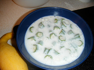 Cut the okra into little slices and soak in buttermilk for about 5 or more minutes. Mine soaked 30 minutes.