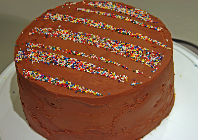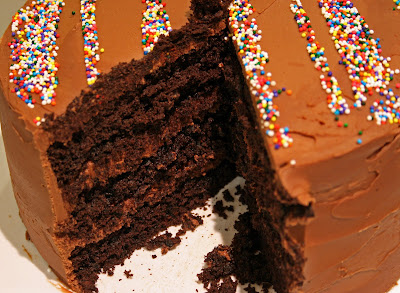 The cake was moist, but not too wet; and very bouncy/spongey. It was rather delicate, and I wished I had followed the instructions of inverting it on cardboard rounds, as my first layer broke just a little. But I was more careful with the other two layers. Luckily I had planned to make the cakes 1 day before I made the frosting, so I wrapped them in wax paper, then plastic wrap, and put them in the freezer. About 12-16 hours later I moved them to the refrigerator. When I got ready to begin the frosting, I took them out of the fridge. This made them much more manageable to move and stack.