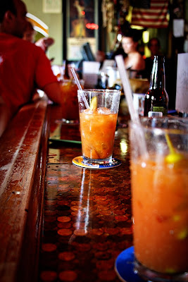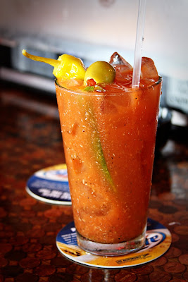 Alright, that’s it! Interest piqued! I nudged The Boy, who was sipping a beer, and asked if he wanted to share a Bloody Mary. He was intrigued too, so I asked the bartender for ONE Bloody Mary. He fixed us two. At first I was mad, there’s no way I could drink the whole thing!