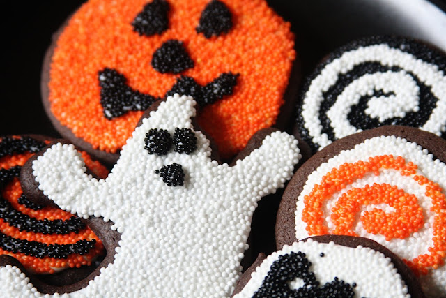 I made these Halloween cookies using this recipe. And I’m not even gonna lie, I had full intentions of doing royal icing and all that, but I fell under the “spell” of the tube of cookie frosting in Kroger, and took the easier way out. If you’re still scrambling for ideas to bring to a Halloween party, be sure to check out some of my previous posts:
