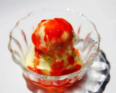2 teaspoon vanilla or half a vanilla bean, scraped and simmered with the cream