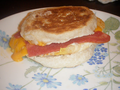 Obviously, I can make this much cheaper & healthier than getting it from the golden arches. I usually use a whole wheat english muffin, but, times are tight, and the whole wheat ones were like a dollar more, so I settled for white ones. It really doesn’t take much more time than it does to fix a bowl of cereal, and there is minimal cleanup as well. I definitely recommend this breakfast. It keeps you full until lunch!